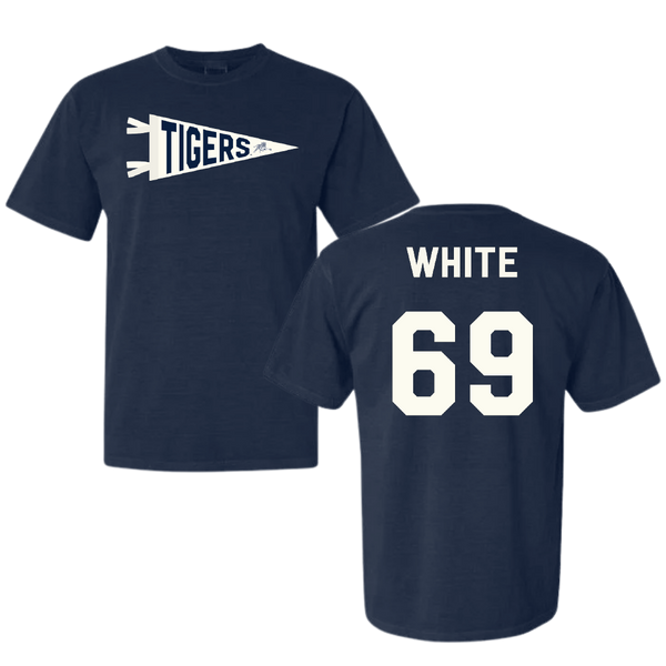 Jackson State University Football Navy Pennant Comfort Colors Tee - #69 Dequarious White
