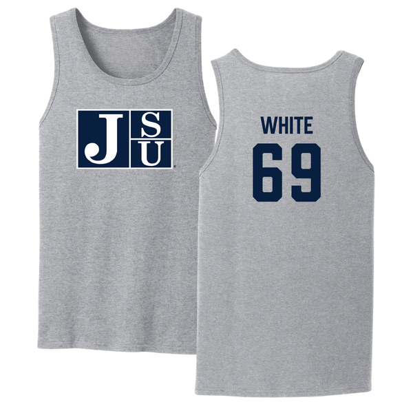 Jackson State University Football Sport Gray Tank Top - #69 Dequarious White