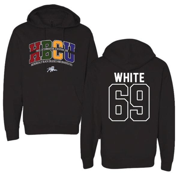 Jackson State University Football Black HBCU Hoodie - #69 Dequarious White