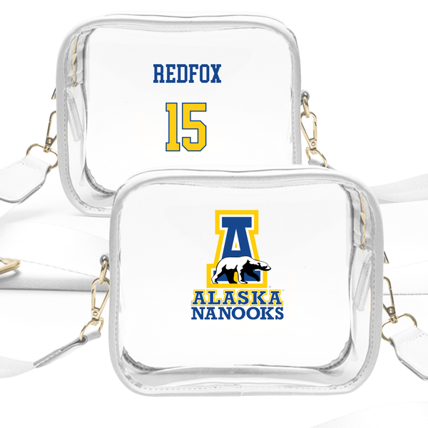 University of Alaska Fairbanks Basketball (W) White Clear Stadium Bag - #15 Desiree Redfox