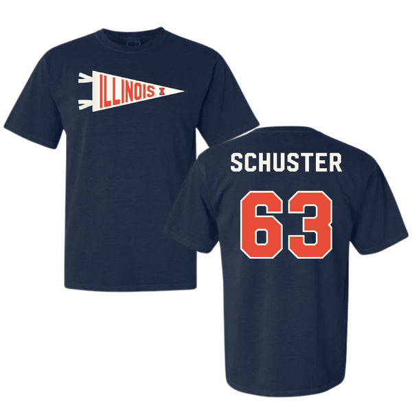 University of Illinois Football Navy Pennant Comfort Colors Tee - #63 Dezmond Schuster