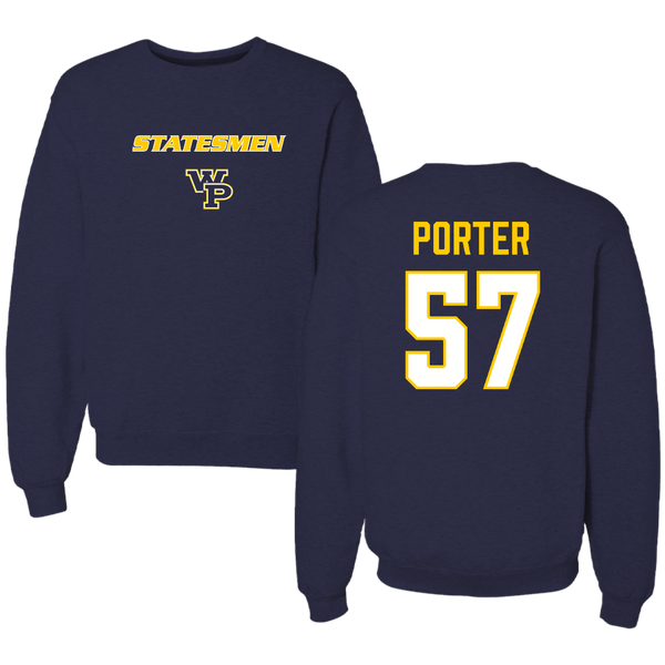 William Penn University Football Navy Crewneck - #57 DiAngelo Porter