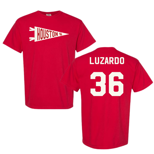 University of Houston Baseball Red Pennant Comfort Colors Tee - #36 Diego Luzardo