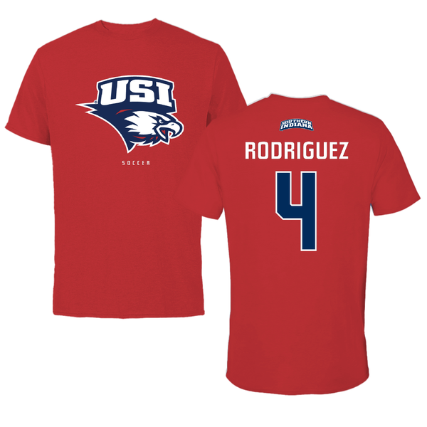 University of Southern Indiana Soccer Red Tee - #4 Diego Rodriguez
