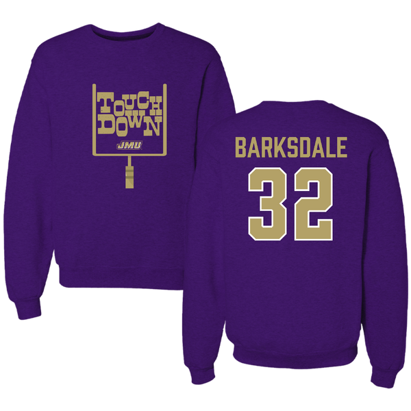 James Madison University Football Purple Touchdown Crewneck - #32 DJ Barksdale