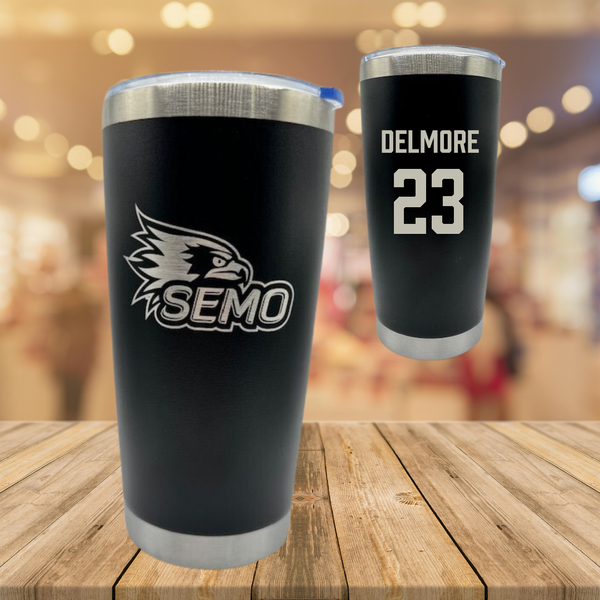 Southeast Missouri State University Football Black Stainless Steel Tumbler - #23 DJ Delmore