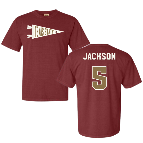 Texas State University Football Maroon Pennant Comfort Colors Tee - #5 Darius Jackson
