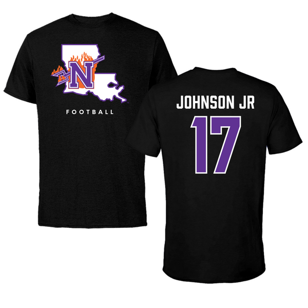 Northwestern State University Football Black Block Tee - #17 DJ Johnson Jr