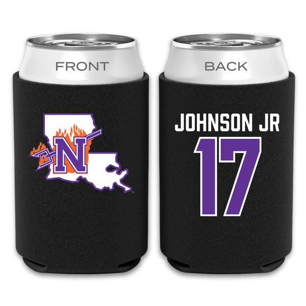 Northwestern State University Football Black Can Cooler - #17 DJ Johnson Jr