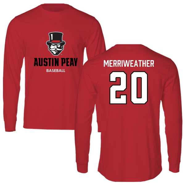 Austin Peay State University Baseball Red General Long Sleeve - #20 DJ Merriweather