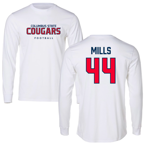 Columbus State University Football White Long Sleeve - #44 Dominique Mills
