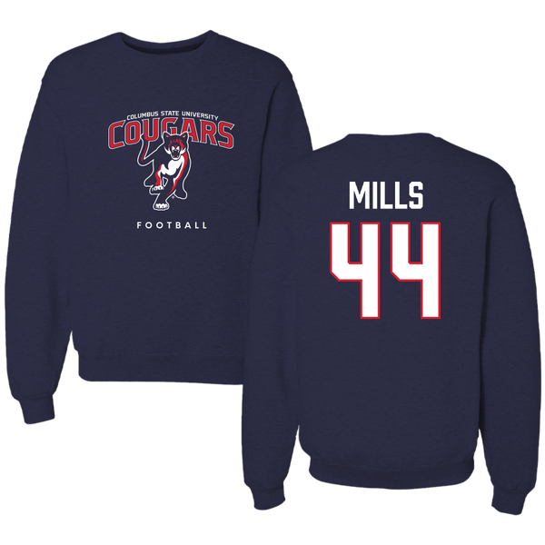 Columbus State University Football Navy Mascot Crewneck - #44 Dominique Mills