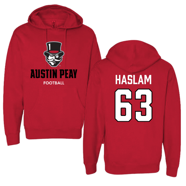 Austin Peay State University Football Red Hoodie - #63 Donovan Haslam