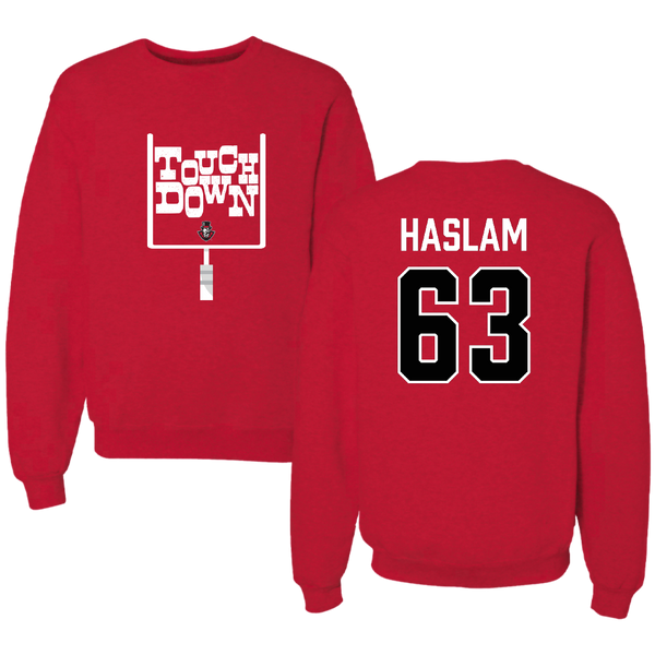 Austin Peay State University Football Red Touchdown Crewneck - #63 Donovan Haslam