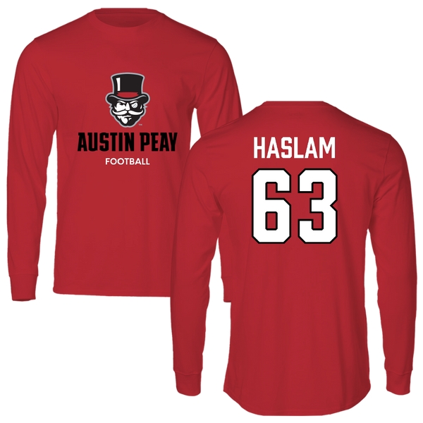 Austin Peay State University Football Red Touchdown Long Sleeve - #63 Donovan Haslam