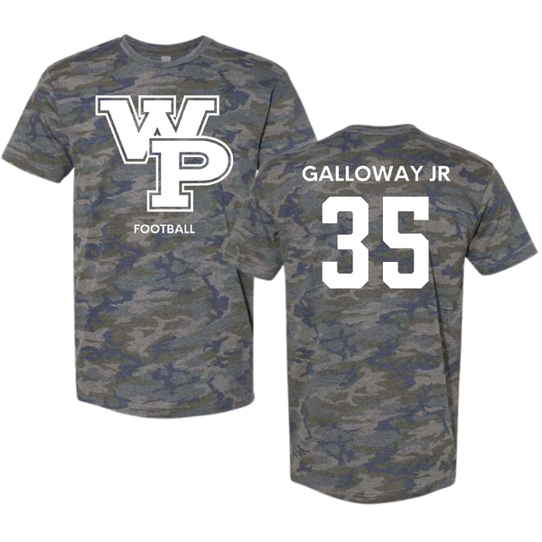 William Penn University Football Vintage Camo Tee - #35 Draylon Galloway jr
