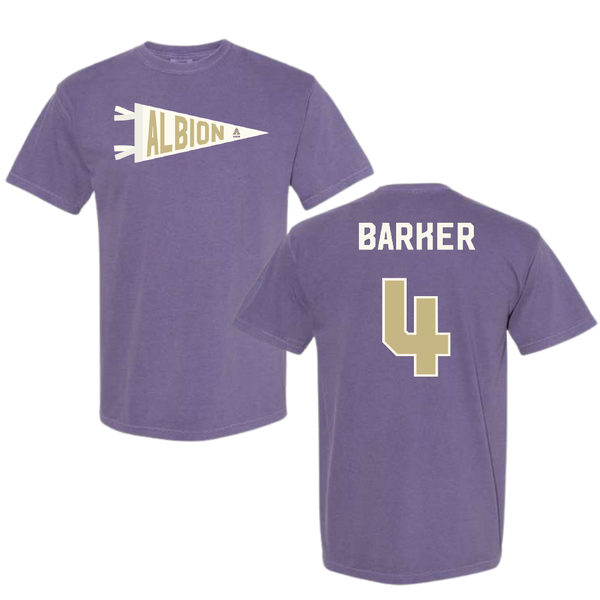 Albion College Soccer Purple Pennant Comfort Colors Tee - #4 Drew Barker