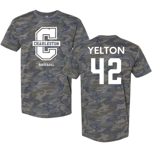 College of Charleston (South Carolina) Baseball Vintage Camo Tee - #42 Drew Yelton