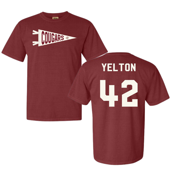 College of Charleston (South Carolina) Baseball Maroon Pennant Comfort Colors Tee - #42 Drew Yelton