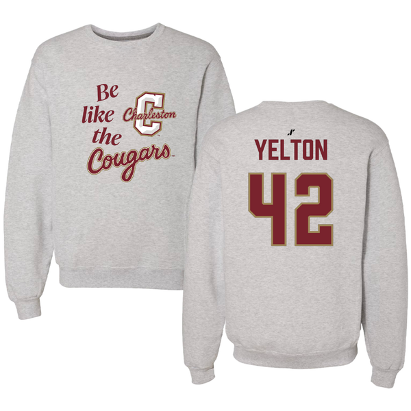 College of Charleston (South Carolina) Baseball Light Gray Be Like Us Crewneck - #42 Drew Yelton