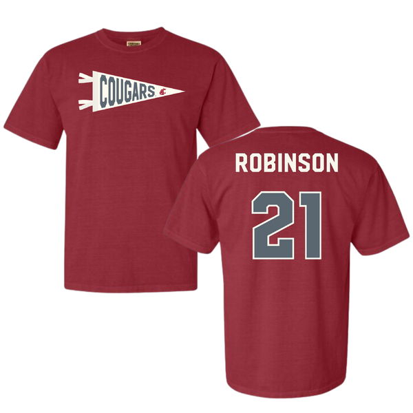 Washington State University Baseball Cardinal Pennant Comfort Colors Tee - #21 Dustin Robinson