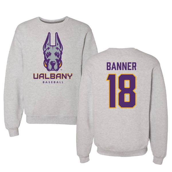 University at Albany Baseball Gray Crewneck - #18 Dylan Banner