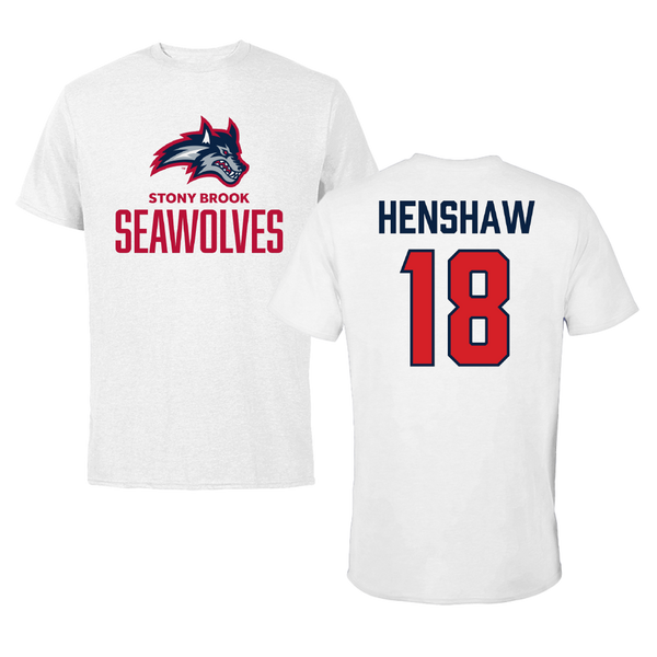 Stony Brook University Baseball White Tee - #18 Dylan Henshaw