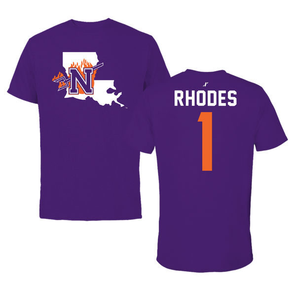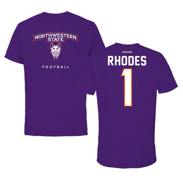 Northwestern State University Football Purple State Tee - #1 Dylan Rhodes