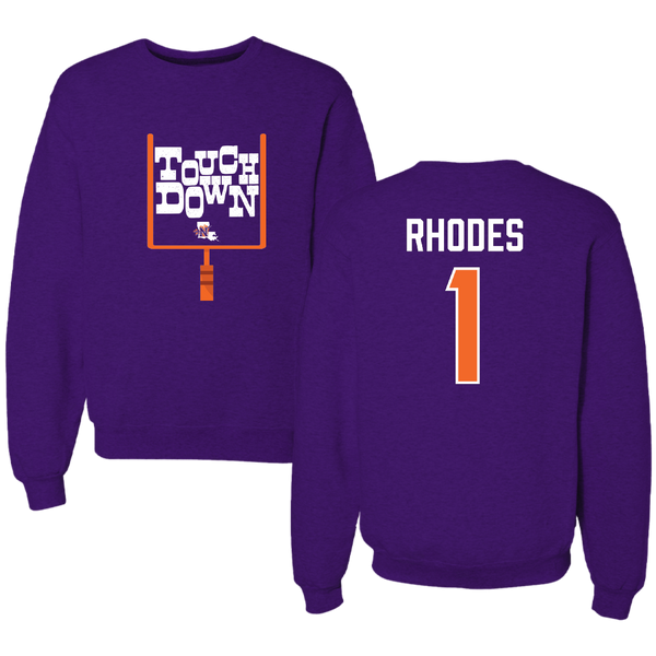 Northwestern State University Football Purple Touchdown Crewneck - #1 Dylan Rhodes