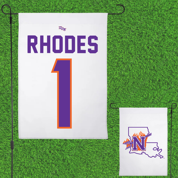 Northwestern State University Football White Garden Flag - #1 Dylan Rhodes