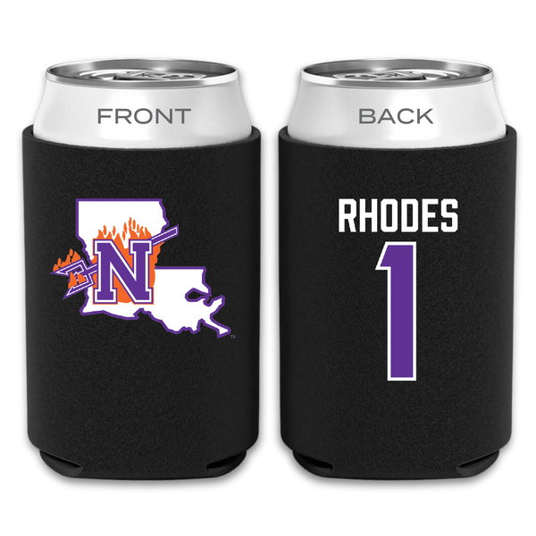 Northwestern State University Football Black Can Cooler - #1 Dylan Rhodes