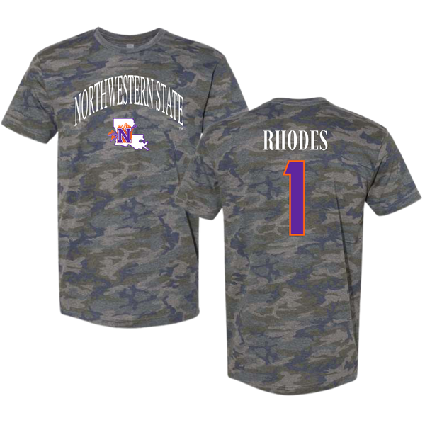 Northwestern State University Football Vintage Camo Tee - #1 Dylan Rhodes