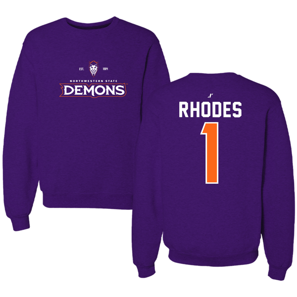 Northwestern State University Football Purple General Crewneck - #1 Dylan Rhodes