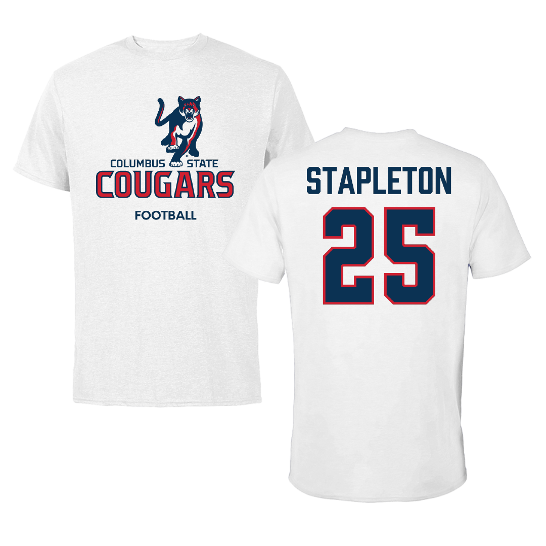 Columbus State University Football White Performance Tee - #25 Eddie Stapleton