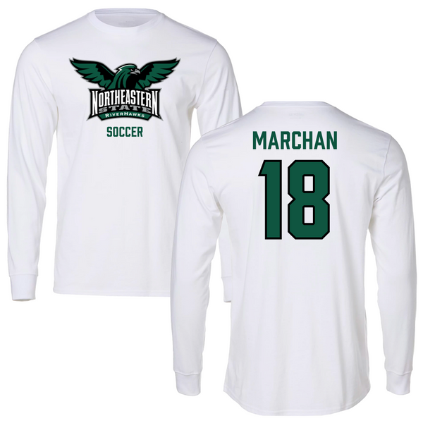 Northeastern State University Soccer White Long Sleeve - #18 Edson Marchan