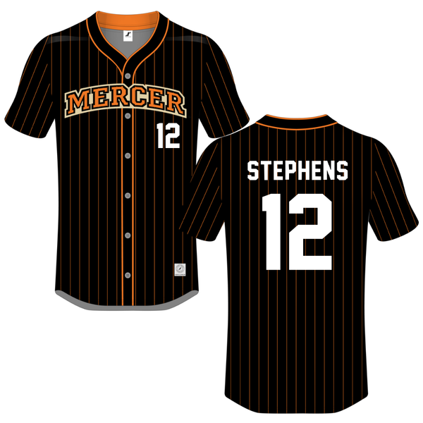 Mercer University Black Pinstripe Button-Down Jersey - #12 Eli Stephens