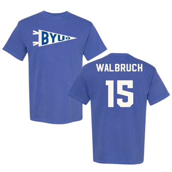 Brigham Young University Soccer Blue Pennant Comfort Colors Tee - #15 Ellie Walbruch