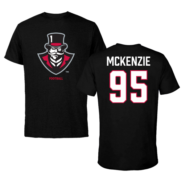 Austin Peay State University Football Black Tee - #95 Elon McKenzie