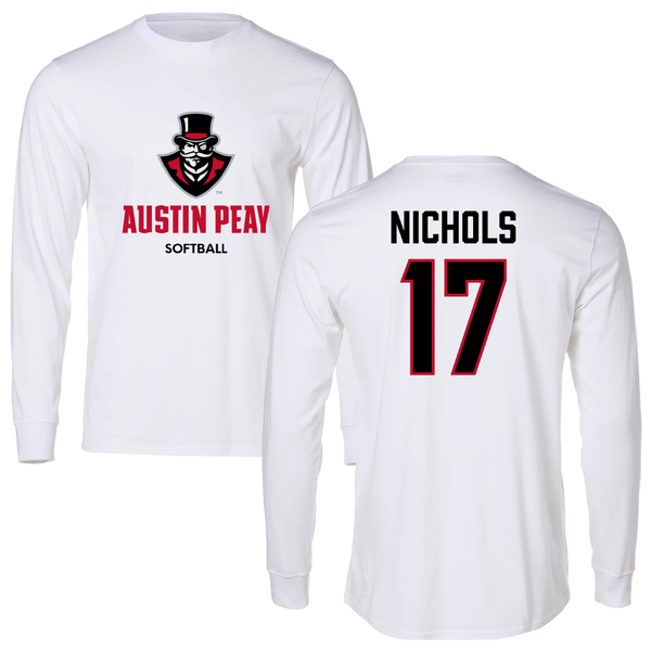 Austin Peay State University Softball White Long Sleeve - #17 Emberly Nichols