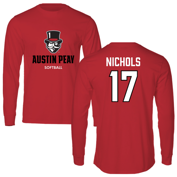 Austin Peay State University Softball Red Mascot Long Sleeve - #17 Emberly Nichols