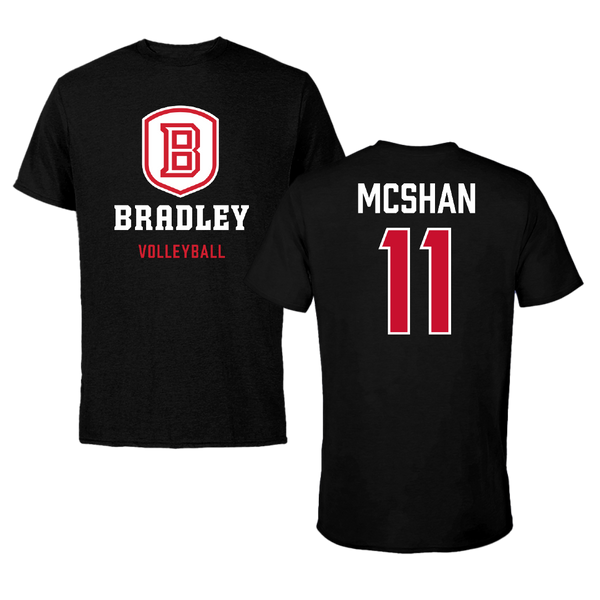 Bradley University Volleyball (W) Black Shield Tee - #11 Emily McShan