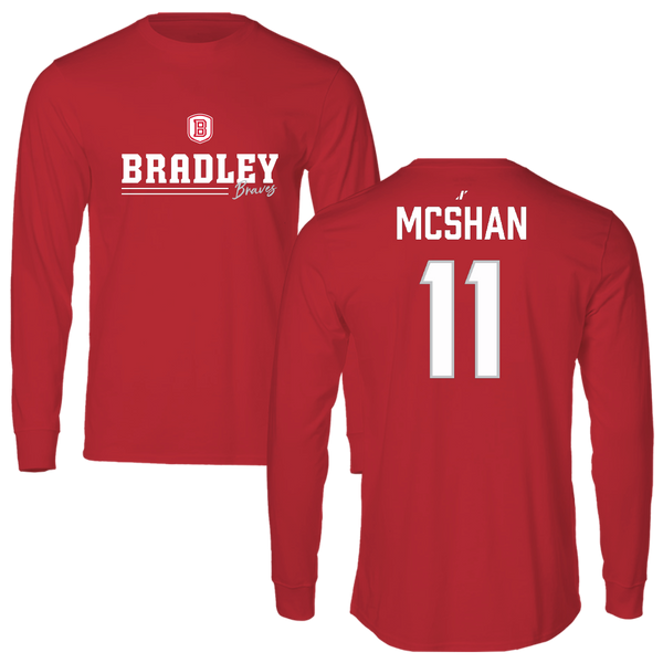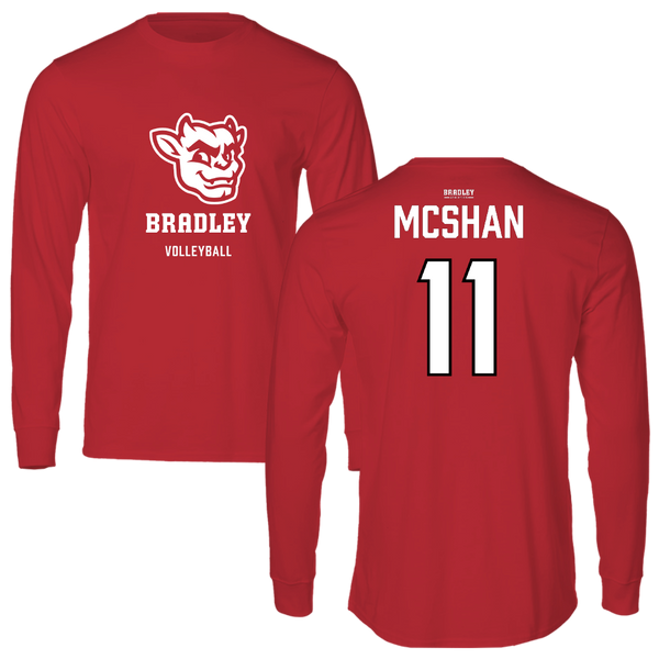 Bradley University Volleyball (W) Red Mascot Long Sleeve - #11 Emily McShan