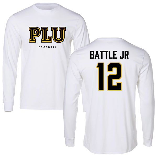 Pacific Lutheran University Football White Classic Long Sleeve - #12 Eric Battle Jr