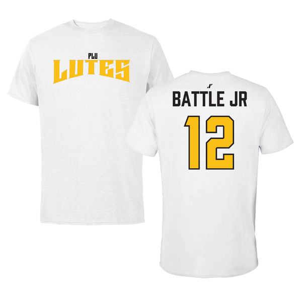 Pacific Lutheran University Football White Classic Tee - #12 Eric Battle Jr