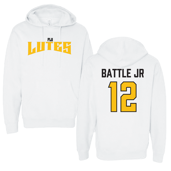 Pacific Lutheran University Football White Classic Hoodie - #12 Eric Battle Jr