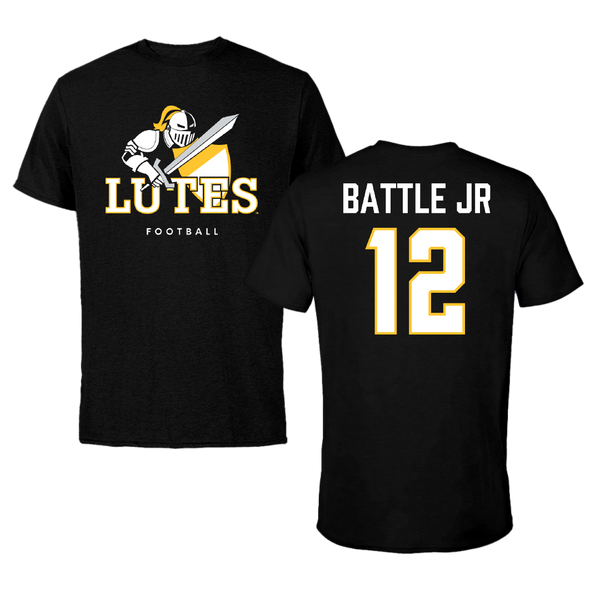 Pacific Lutheran University Football Black Tee - #12 Eric Battle Jr