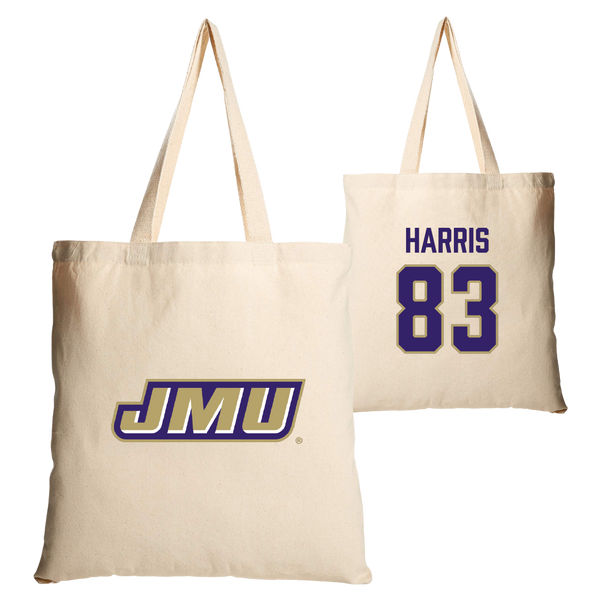 James Madison University Football Tan Canvas Tote Bag - #83 Erick Harris