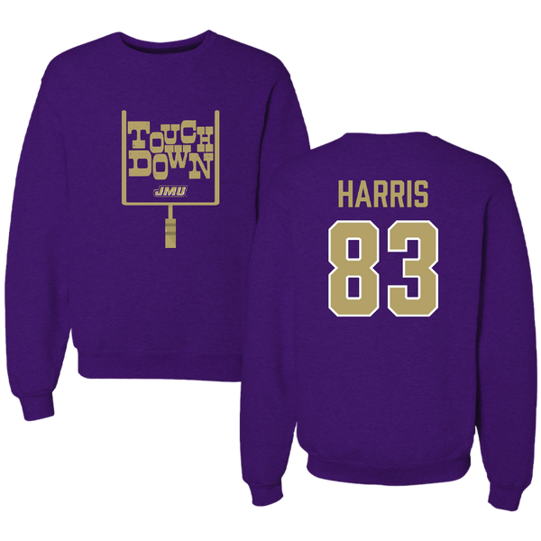 James Madison University Football Purple Touchdown Crewneck - #83 Erick Harris