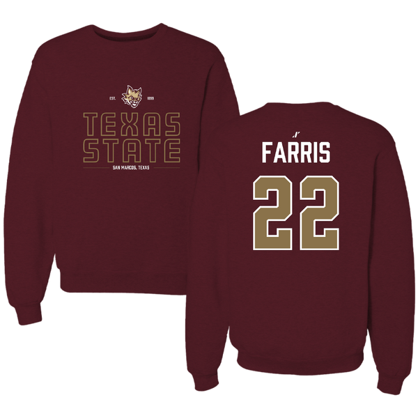 Texas State University Baseball Maroon General Crewneck - #22 Ethan Farris