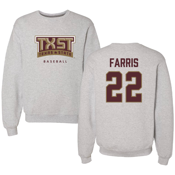 Texas State University Baseball Gray Crewneck - #22 Ethan Farris